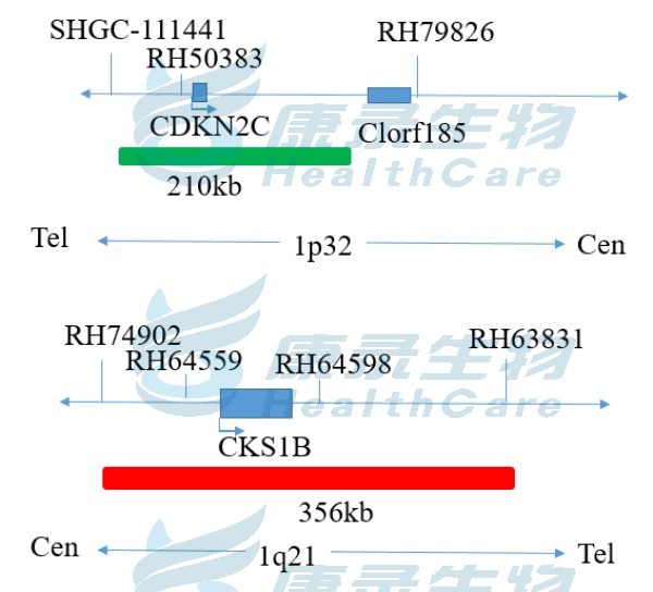 1q21橘红色探针;1p32绿色探针。 本产品为反色定制,请注意区别。